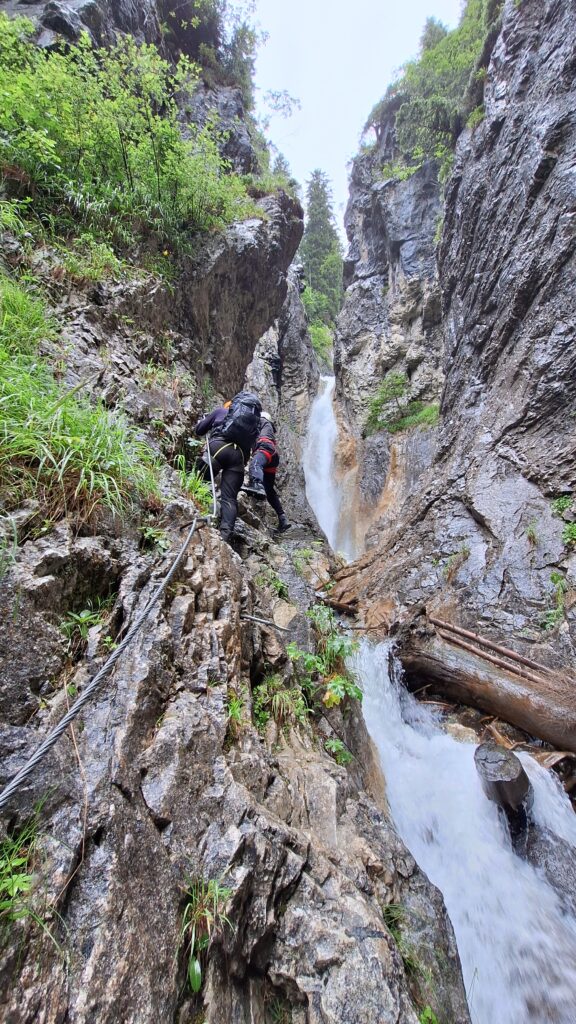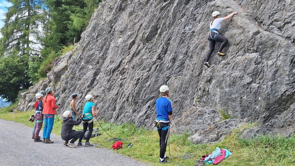 Mit 20 Personen auf dem Gipfel der Welt? Nein, ganz so hoch waren wir nicht. Aber bis auf 2500 Meter haben wir es geschafft. Und es war einfach mega! Nicht nur die Aussicht von dort oben auf der Grnze zwischen Österreich und Schweiz, auch die Klettertage am Fels, das Kraxeln auf Klettersteigen über tosendem Wasser, das gemeinsame Kochen und die abendliche Gemeinschaft unter uns waren einmalig. Was konnten uns da schon die Regenschauer anhaben? Jede trockene Minute wurde genutzt und gefühlt auch jede einzelne Sekunde des Tages.